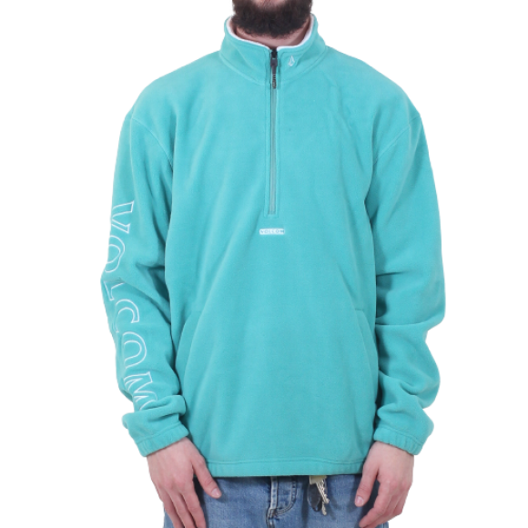 Atavic Quarter Zip er en fleecetrøje fra Volcom i 100% polyester. Denne fleece har lynlåslukning, elastik omkring håndled og livet samt en kængurulomme foran. Der er broderet Volcom logoer på halsen, maven og den ene arm.